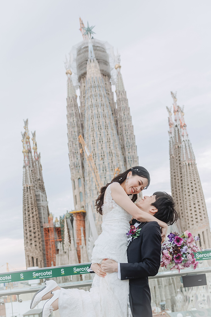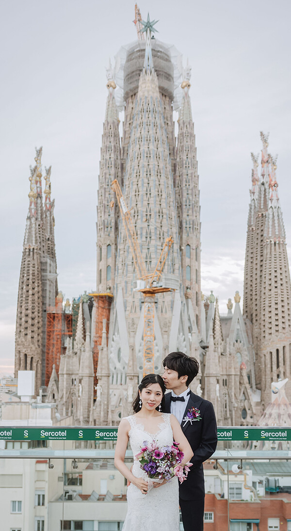 The Powerful wine Color カジュアルでありながら、ハイネックのタイトドレスが素敵な衣装には、ボリュームのあるブーケを。この絶妙なバランスは、まさにクールでシンプルなオシャレ上級コーデ。全体をすっきりとまとめることがポイント! CATEGORIESサグラファミリア周辺, ピンク系ブーケ, 秋SEASON11月中旬BOUQUETバラ/ガーベラ/アネモネ等HAIR MAKEUPハーフアップダウンスタイルCOLOR COORDINATION